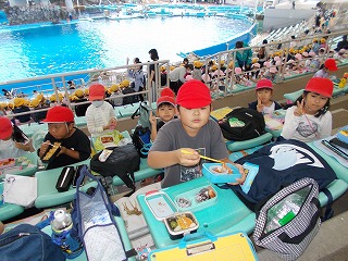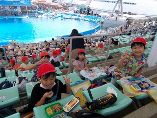 1・2年生で名古屋港水族館に出かけました。水族館では、たくさんの種類の海の生き物を前にみんな大喜び。イルカショーでは、イルカのダイナミックなジャンプに思わず歓声があがりました。