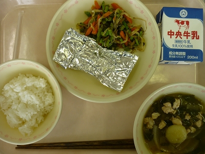牛乳 ごはん さばのぎんがみやき いそかあえ