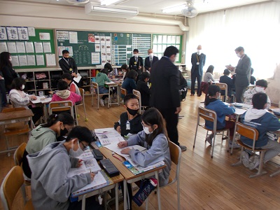 学校訪問を行うにあたり、先生方には授業の指導案を作成し、「主体的・対話的で深い学び」が展開される授業づくりに取り組んでもらいました。子どもたちは普段の授業に比べ、緊張気味な子もいましたが、多くの子どもたちが授業に意欲的に取り組み、互いの考えを聴き合いながら学びを深めることができました。本日公開された全ての授業は子どもたちだけではなく、私たち教職員にとっても学びの多い授業となりました。
