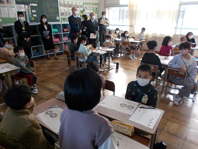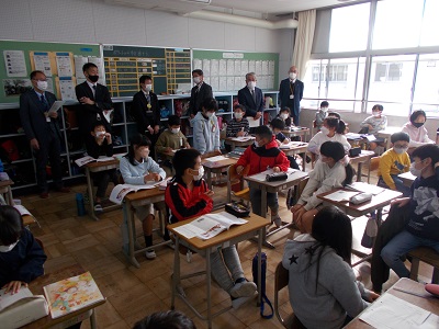学校訪問は愛西市全ての学校で1年間に1回行われます。学校訪問では、教育委員会の方々に本校を訪問していただき、授業で学ぶ子どもたちの様子をご覧いただきました。