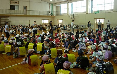 全校のみなさんと家族のみなさんが体育館に集まりました。