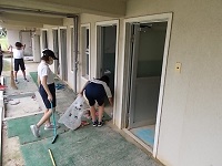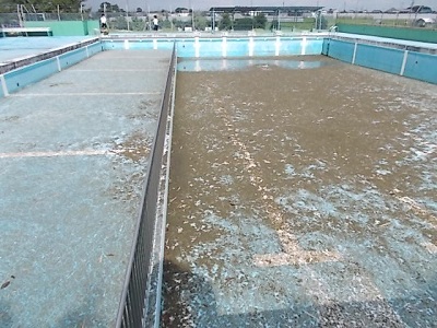 一番上の写真は水を抜いたプールです。2年間の汚れがたまっていました。プールについてはヘドロなど、衛生上の問題があるため、職員で清掃していきます。