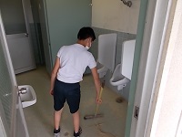 今日は委員会の時間に環境美化委員会の子どもたちがプール施設のトイレや更衣室などの掃除を行ってくれました。それぞれの部屋の掃き掃除をすると、たくさんの砂が集まり、子どもたちは驚きの声を上げていました。とってもきれいに掃除をしてくれてありがとうございました。
