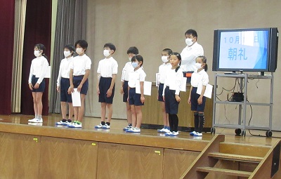 認証式で名前を呼ばれた時、どの子も体育館に響き渡る大きな声で返事をすることができ、学級委員をしっかりと行っていこうという決意を感じることができました。