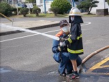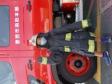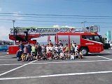 はしご車にのせてもらったり、防火衣を着させてもらったり、放水体験をさせてもらったりしました。消防車にもいろいろな装備をした車があり、子どもたちは「おー!」と声をあげて喜んでいました。