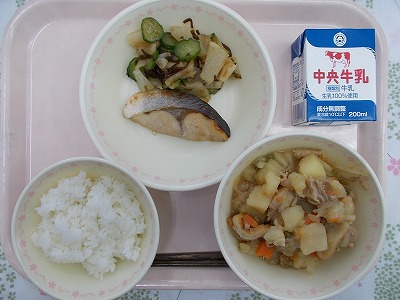 ごはん 牛乳 肉じゃが ぶりの松前風味焼き 即席漬け