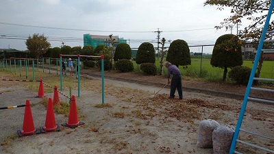 運動場の東側のフェンス沿いの植木は、夏休み中に
