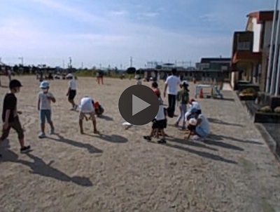初日の今日はグラウンドの石拾いです。なかよし班(1~6年生の縦割り班)に分かれ、どれだけ石を拾えるか競争しながら石拾いをしてくれました。