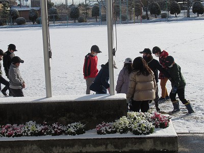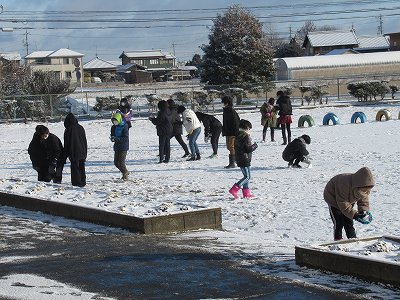 10年に1度と言われるほどの寒波が日本列島を覆い、本校の運動場にも雪が降り積りました。雪だるまをつくることができるほどの降雪量ではありませんでしたが、全校で雪遊びを楽しみました。子どもたちは歓声をあげ、思い思いに楽しむ様子が見られました。