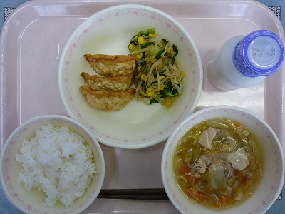 ごはん 牛乳 揚げぎょうざ チンゲン菜の中華和え