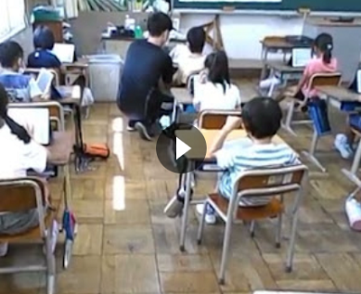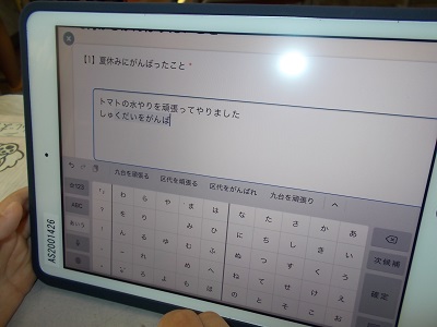 タブレットに入っているロイロノートというアプリを使って、2年生の子どもたちが夏休みにがんばったことをまとめていました。