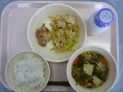 ごはん 牛乳 ちぐさ和え 春菊の吹き寄せ汁