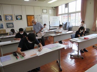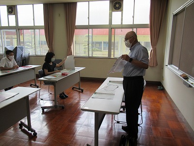 今日は、講師の先生をお招きし、各学級の「Q-U」(5月実施)の結果をもとに、9月からの学級経営について担任ひとりひとりが考え学びました。