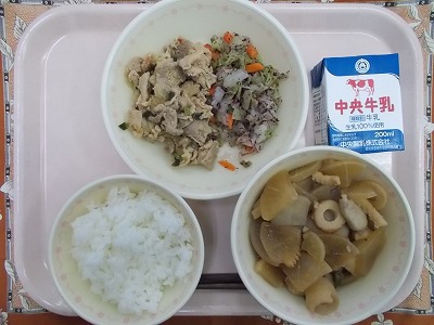 ごはん 牛乳 豚肉のしょうが炒め 大根といかの煮物