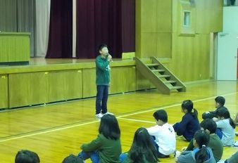 児童会長から、赤い羽根募金の趣旨や、集め方の説明がありました。