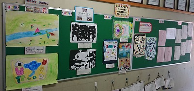 職員室の西の掲示板には、文化の秋にふさわしく、図工の作品や