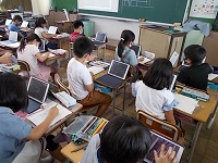 タブレットの操作にも慣れ、地図を大きくしたり小さくしたりしながら興味をもって航空写真を眺めている子どもたちの姿が印象的でした。上空から眺めてみて、どんなことに気が付いたのでしょうか?今後の授業展開が楽しみです。