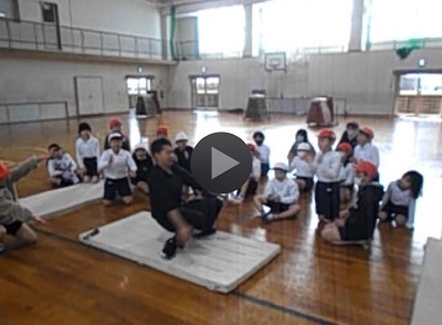 4年生の子どもたちは体育の時間に首はねとびの授業をしていました。