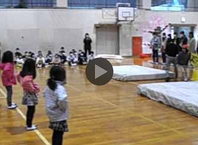 1年生は6年生とマットを移動させる競争を行いました。楽しそうに行う子どもたちの姿をご覧ください。