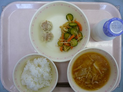 ごはん 牛乳 しゅうまい ナムル キムチスープ