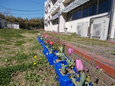 例年、入学式の式場を飾るチューリップですが、