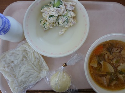 牛乳 にくうどん おからサラダ むしパン