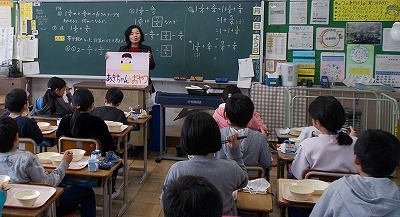 4年生は給食の時間に、調理場の栄養教諭の方に来ていただき、