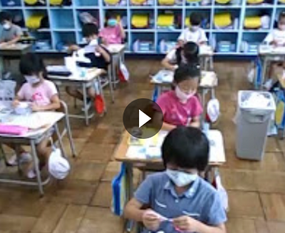 1年生の子どもたちが図工の時間に紙を切ったり、折ったりしながら作品作りを行っていました。