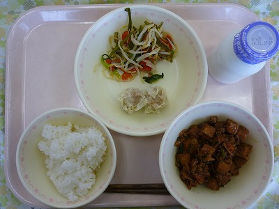 ごはん 牛乳 生揚げの中華炒め しゅうまい 茎わかめのナムル