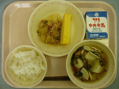 ごはん 玉子焼き とうがんとえびの煮物 すまし汁