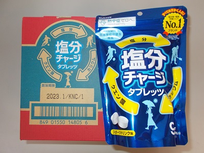 上の写真は塩分チャージタブレットです。本校の保健の先生がキャンペーンに応募し、無償でいただけました。