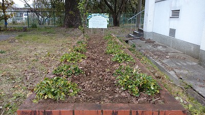 植えてある花壇を活用するため、草取りをして耕しました。