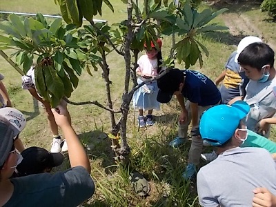 昼放課、子どもたちが「先生、ちょっと来てください」と職員室にやってきました。理由を聞くと「カメが妊娠しています」とのこと…。子どもたちに案内されて到着したグリーンマウンテンでは、1匹のミドリガメが穴を掘って、産卵の準備を始めていました。