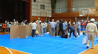 避難所用のボード組立訓練や炊き出し等が行われ、