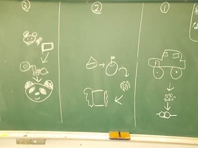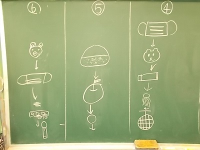 子どもたちは楽しそうに順に黒板にイラストを描いていました。