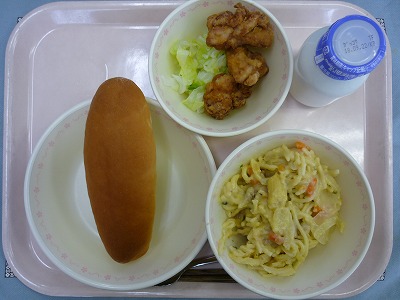 小型ロール 牛乳 鶏肉のレモン風味揚げ ボイルキャベツ