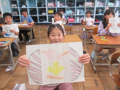 2年生の図画工作「ふしぎなたまご」では、想像力を膨らませて、卵の中から生まれてくるものを自由に想像し、クレパスを使って表現します。生まれてくるものは、生き物とは限りません。今日は、多様なものが卵から生まれる様子を楽しむための試し描きをしました。紙を谷折り・山折りし、中から生まれて飛び出てくることにワクワクし、みんなで発表会もしました!
