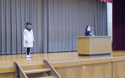 今朝の前期の終業式では、3年生と6年生の代表が、