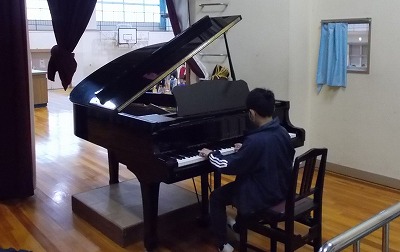 式の最後には、6年生の代表のピアノ伴奏で校歌を歌いました。