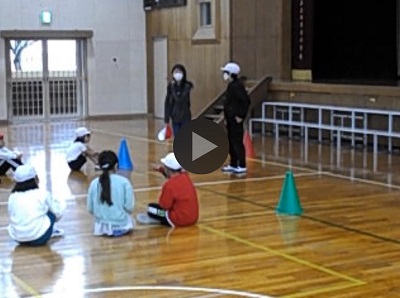 「雨の日でも休み時間に運動したい」「縦割りで遊びたい」などの意見から話し合いがもたれ「雨の日でも体を動かそう運動」が企画されました。