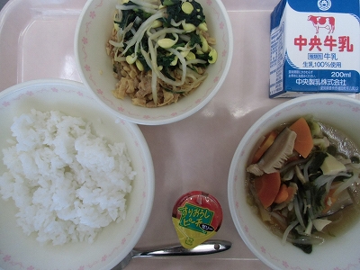 ごはん 牛乳 ビビンバ ワンタンスープ すりおろしピーチ