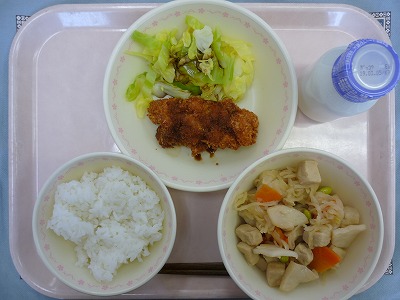 ごはん 牛乳 チキンカツ ゆでキャベツ