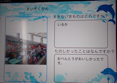 1年生の子どもたちはタブレットを使って社会見学発表会を行っていました。