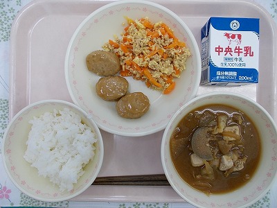 ごはん 牛乳 レバー入りつくね ニンジンしりしり