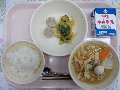 ごはん 牛乳 八宝菜 しゅうまい 糸寒天のナムル