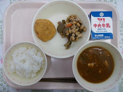 ごはん 牛乳 れんこんサンドフライ 大豆の五目煮
