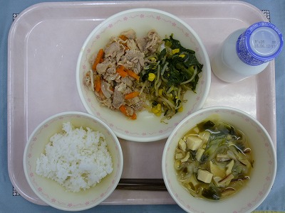 ごはん 牛乳 豚肉のしょうが炒め チンゲン菜の中華炒め
