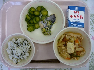 わかめごはん 牛乳 大根のうま煮 さわらのねぎ塩焼き