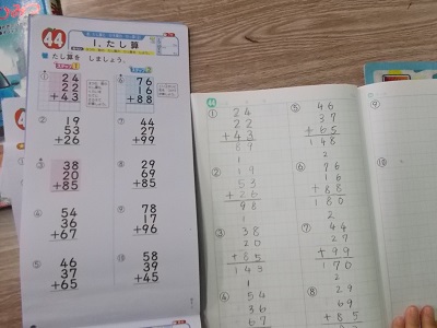 2年生の子どもたちは立北タイム(朝の時間)に算数の計算練習を行っていました。