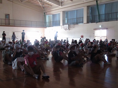 保健給食委員会による「元気アップ集会」が開かれました。熱中症、う歯、視力低下等を予防するためには、どのような生活や行動をするのがよいかについて、クイズを通して全校で学びました。